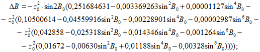 B0 - геодезическая широта точки, абсцисса которой равна абсциссе x определяемой точки, а ордината равна нулю, рад;