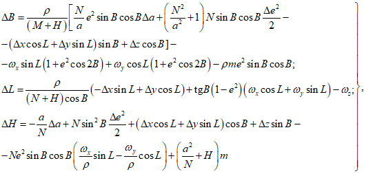 5.5. Преобразование приращений пространственных прямоугольных координат из одной системы координат в другую