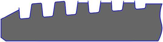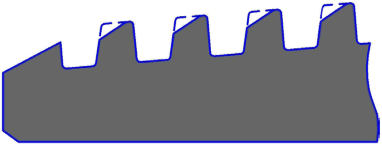 3.6 гребень (Нрк. заусенец, выступ, буртик): Тонкая длинная полоска металла, выступающая над вершиной витка резьбы и кромкой фаски (см. рисунок 3). а) Гребни на заходной фаске и вершинах витков наружной резьбы с неполным профилем б) Гребень на заходной фаске Рисунок 3 - Гребень | en | fin |