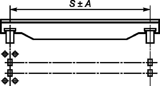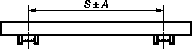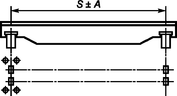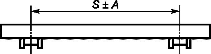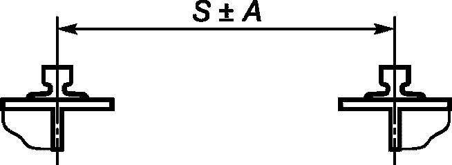 A | Допуск на колею тележки, измеренный по центру дорожки катания ходового колеса для колес с ребордами | ![]() | Для колеи S <= 2 +/- 1. | Для колеи S <= 2 +/- 2. | Для колеи S <= 2 +/- 2,5. | Для колеи S <= 2 +/- 3,2. | мм |