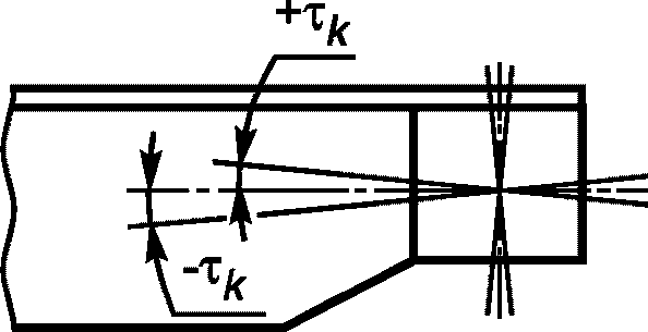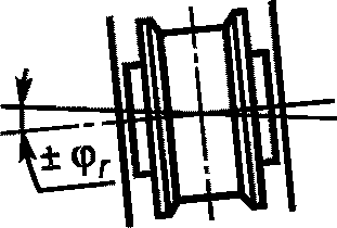 Допуск на отклонение положения оси колеса в вертикальной плоскости. Допуск назначается для ненагруженного кранового моста (без тележки) так, чтобы под номинальной нагрузкой (тележка с номинальным грузом, установленная в середине пролета) ось заняла примерно горизонтальное положение вследствие упругой деформации моста | ![]() | +2 -0,5 | +2,6 -0,6 | 0/00 | |||