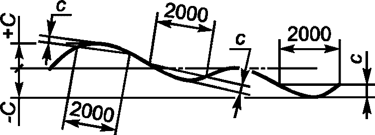 c | Допуск на прямолинейность рельса в вертикальной плоскости на длине 2000 мм | 1 | 2 | 4 | 8 | мм | |