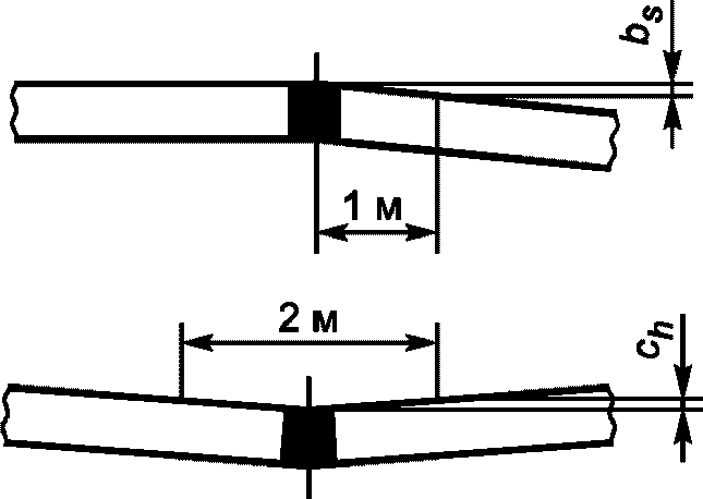 bs | Допуск прямолинейности рельса в плане на участке длиной 1 м от сварного стыка рельса (в одну сторону) |