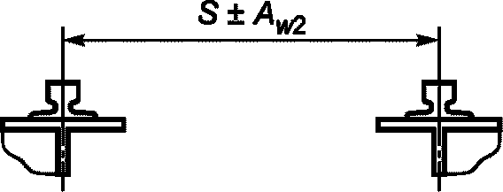 Aw4 | Допуск на колею тележки измеренный по центру дорожки катания ходового колеса для колес с ребордами | ![]() | Для колеи S <= 2 +/- 3. | Для колеи S <= 2 +/- 6. | Для колеи S <= 2 +/- 8. | Для колеи S <= 2 +/- 12. | мм |