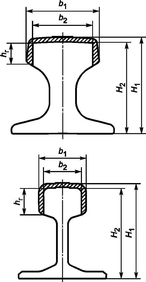 Тип рельса | b2 | H2 | hr | Приведенный износ | ||||