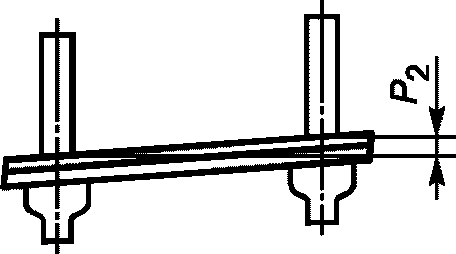 P1 | Допуск на превышение одного рельса над другим, измеренное в любой плоскости, перпендикулярной к направлению рельсового пути | ![]() | 0,002S, но не более 40 | мм |