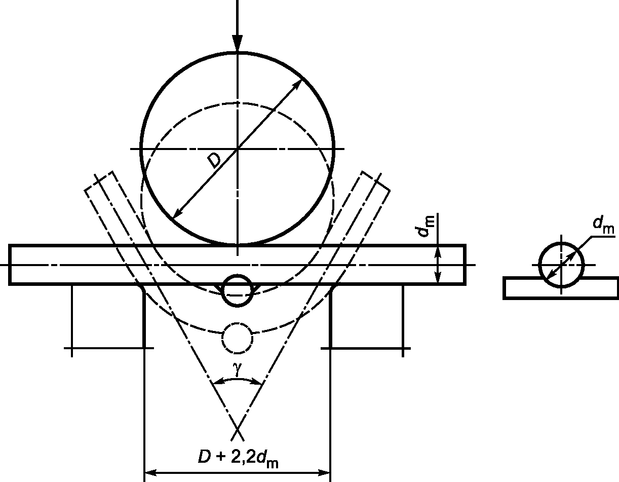 Г.4.5.1 Результаты испытаний на изгиб соединений считают удовлетворительными, если до угла изгиба 60° образец не разрушился и не возникли видимые трещины. Отслоение поперечного стержня при испытаниях крестообразных соединений, выполненных контактной точечной и ручной дуговой сварками, браковочным признаком не является.