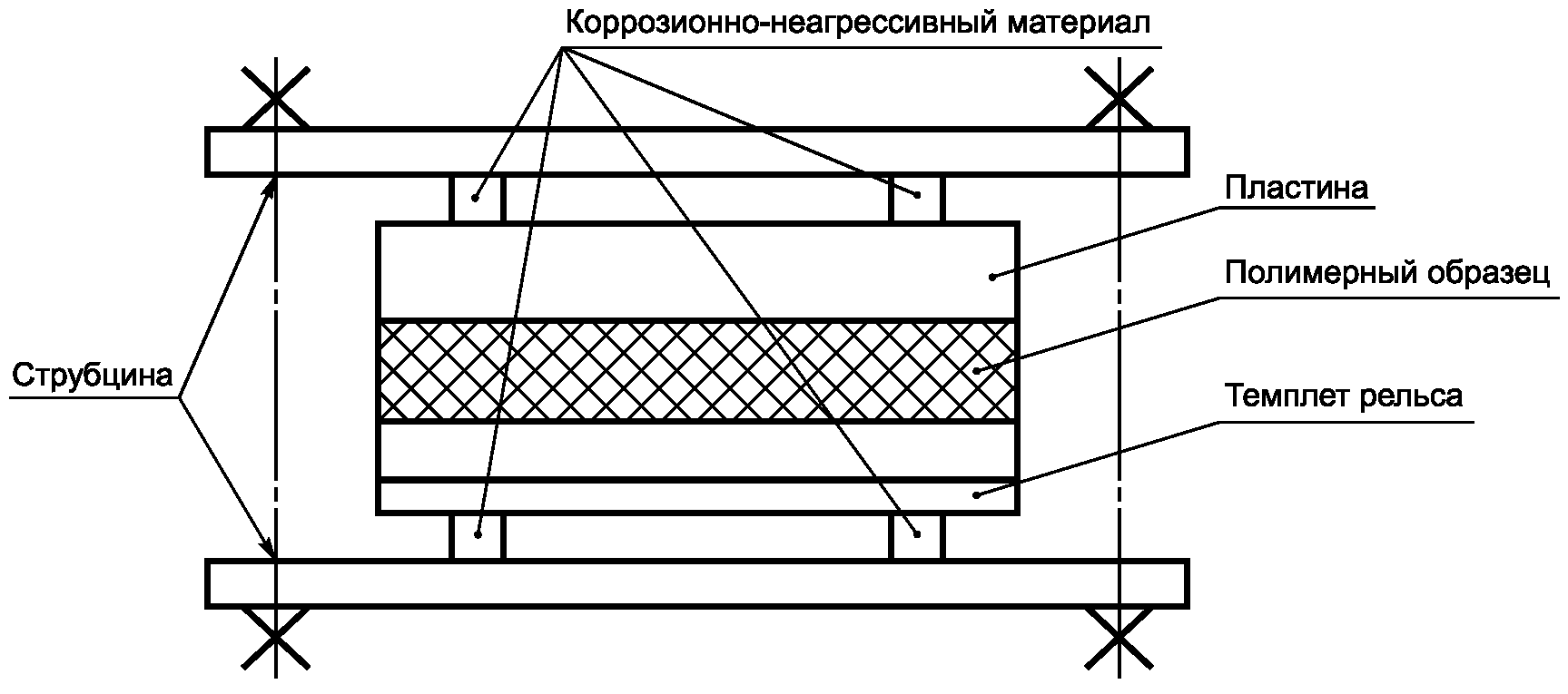 3.8 коррозионная инертность к металлу: Отсутствие химического воздействия материала прокладки, вызывающего коррозию подошвы рельса.