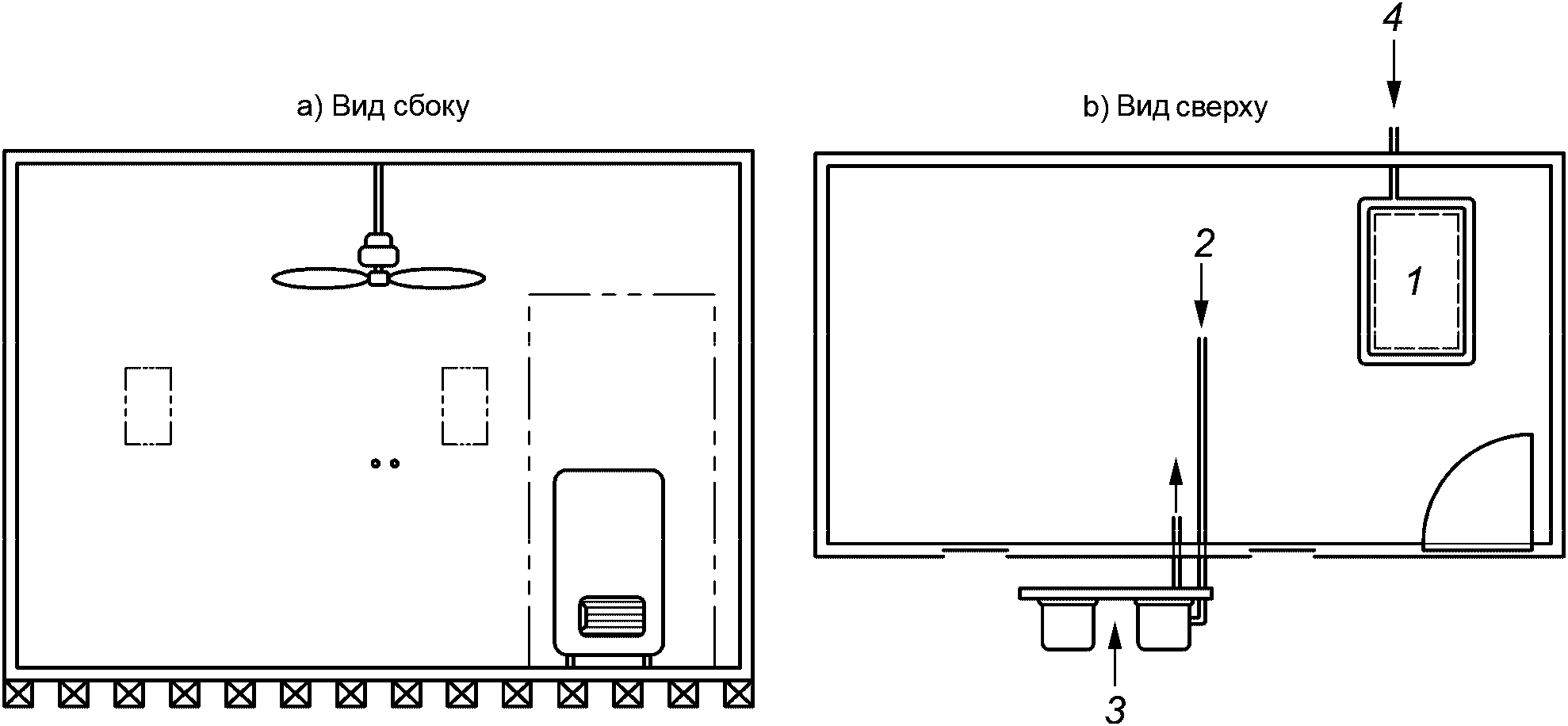 Для прибора с низкой мощностью [< 1,0 кВт (Hs)] может потребоваться меньшее помещение с размерами (4,5 +/- 0,5) м3. Помещение должно достигать 1,80 - 2,10 м в высоту и иметь длину и ширину менее 1 м.