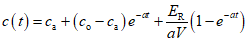 где c(t) - степень загрязнения в помещении, мкг/г;