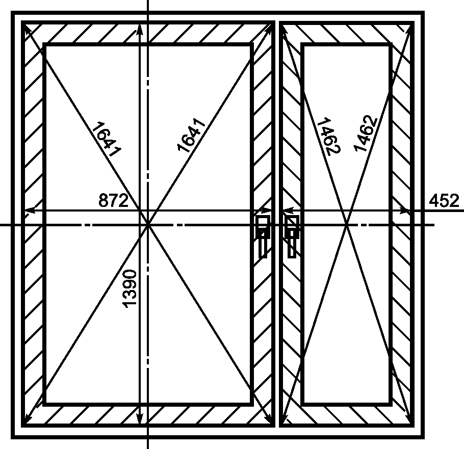- геометрические параметры окна в проеме, включая проекцию габаритного размера окна в свету, проекцию размера стеклопакета каждой створки, проекцию размера несветопрозрачного участка окна (рама + створка);
