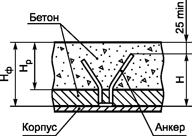 Однослойная | | Hф - толщина футеровки H - высота анкера H = 0,75Hф, при условии, что расстояние от анкера до поверхности футеровки составит не менее 25 мм |