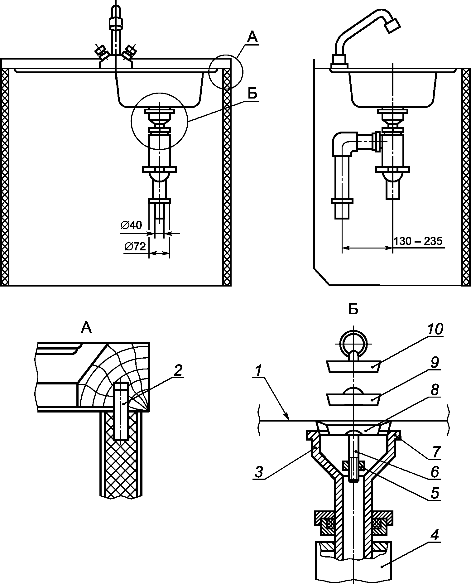 МОНТАЖНЫЕ СХЕМЫ УСТАНОВКИ МОЕК