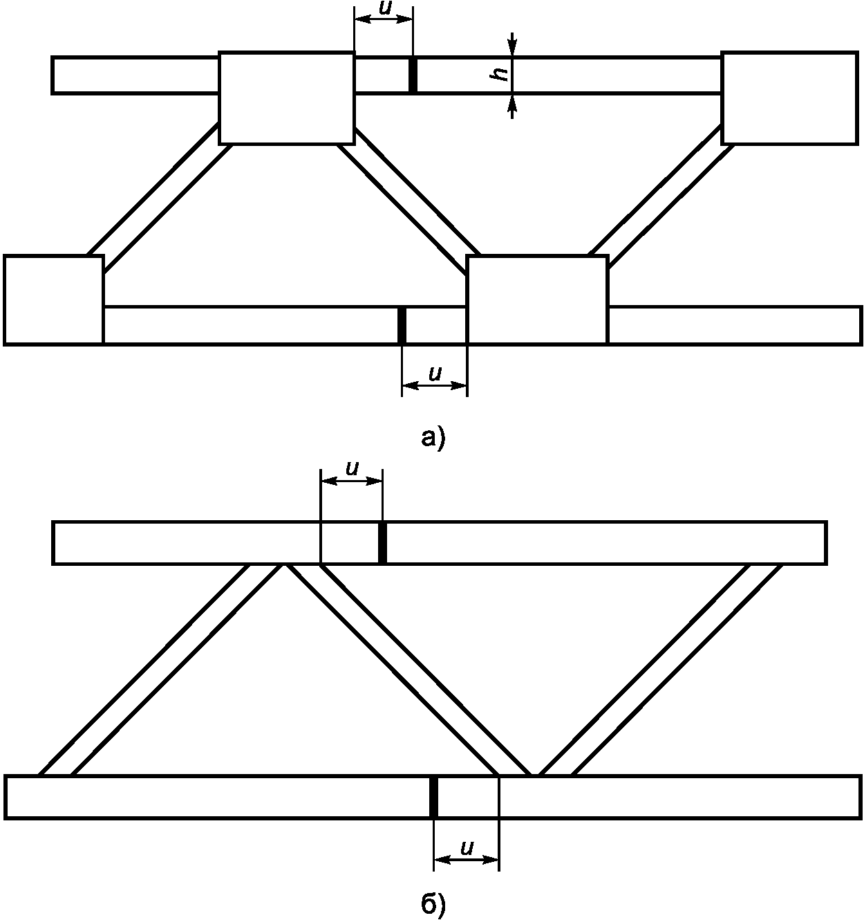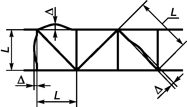 Допуск прямолинейности оси стержня фермы (пояса, стойки или раскоса)  | | 0,0015L |