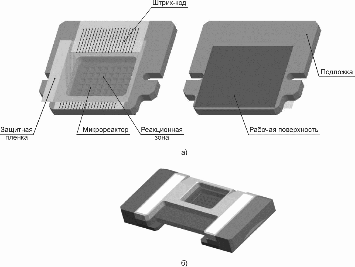 Рисунок Г.1 - Схема микрочипа а) и картриджа б)