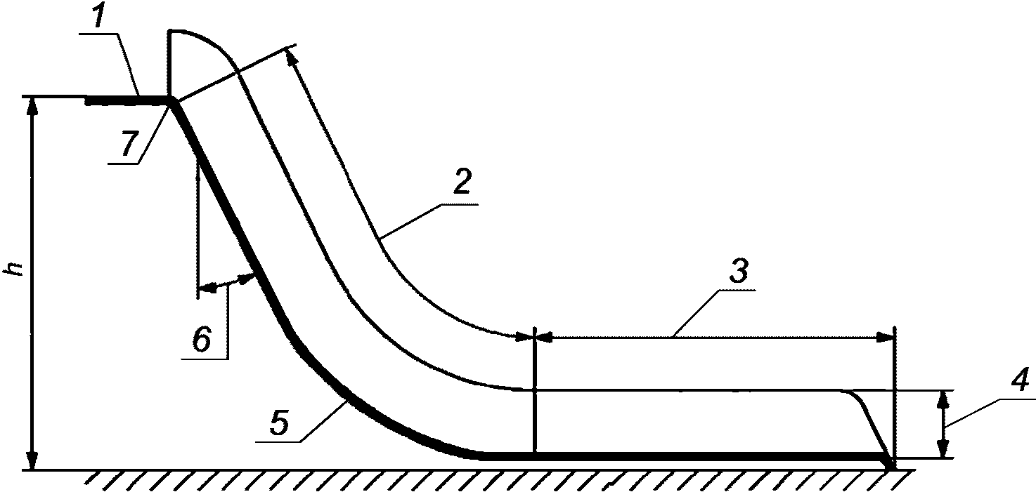 крутая горка (steep hill): Горка с почти вертикальным спуском, имеющим в нижней части радиусный элемент, переходящий в горизонтальный конечный участок (см.