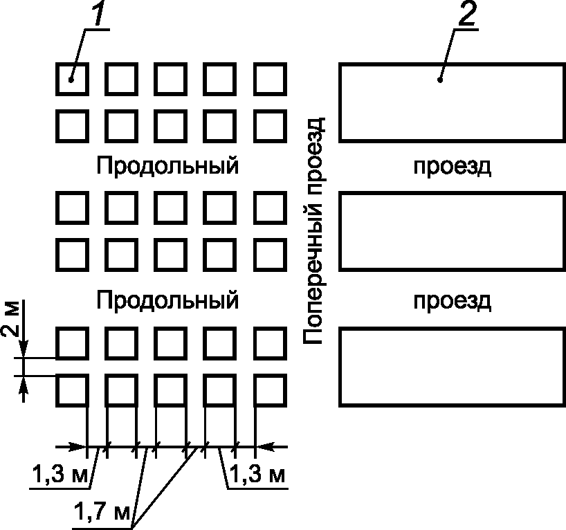 Рисунок А.1 - Планировка групп рядовых штабелей