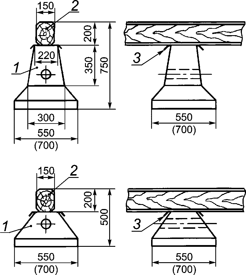 3.9 Каждый штабель пиломатериалов должен быть уложен на фундамент, который выполнен из стационарных или переносных элементов - железобетонных или бетонных опор и железобетонных или деревянных прогонов. Допускается применять деревянные опоры.