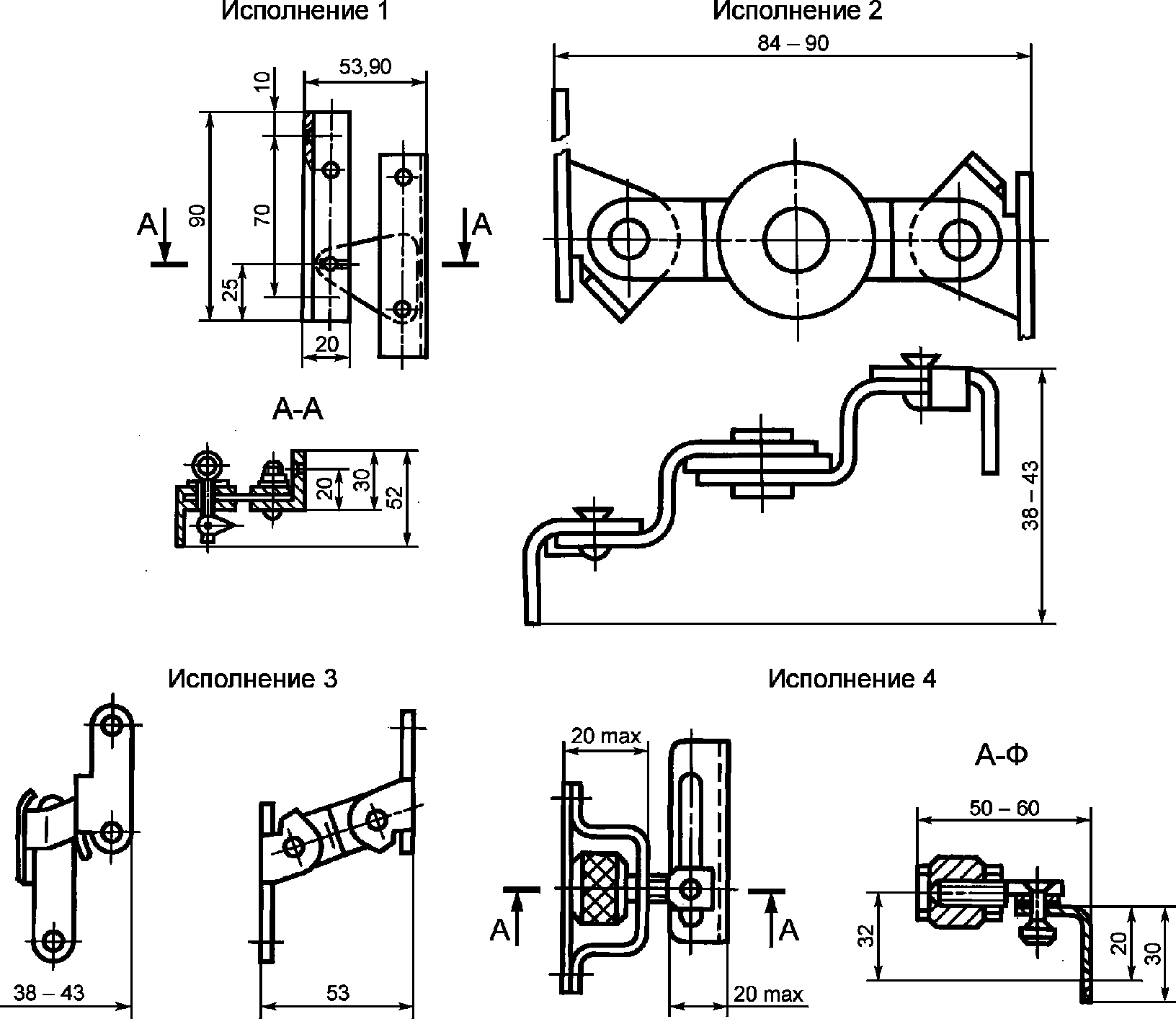 4.1.3 Настоящий стандарт не устанавливает форму ручек, накладок, сечения засовов накладных шпингалетов, а также заостренной части штифтов для заверток.