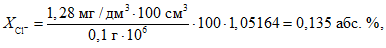 Полученное значение массовой доли хлор-иона, абс. % | | | | | 0,135 |