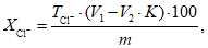 где 1,05164 - коэффициент пересчета полученной массовой доли хлор-иона на прокаленное вещество.
