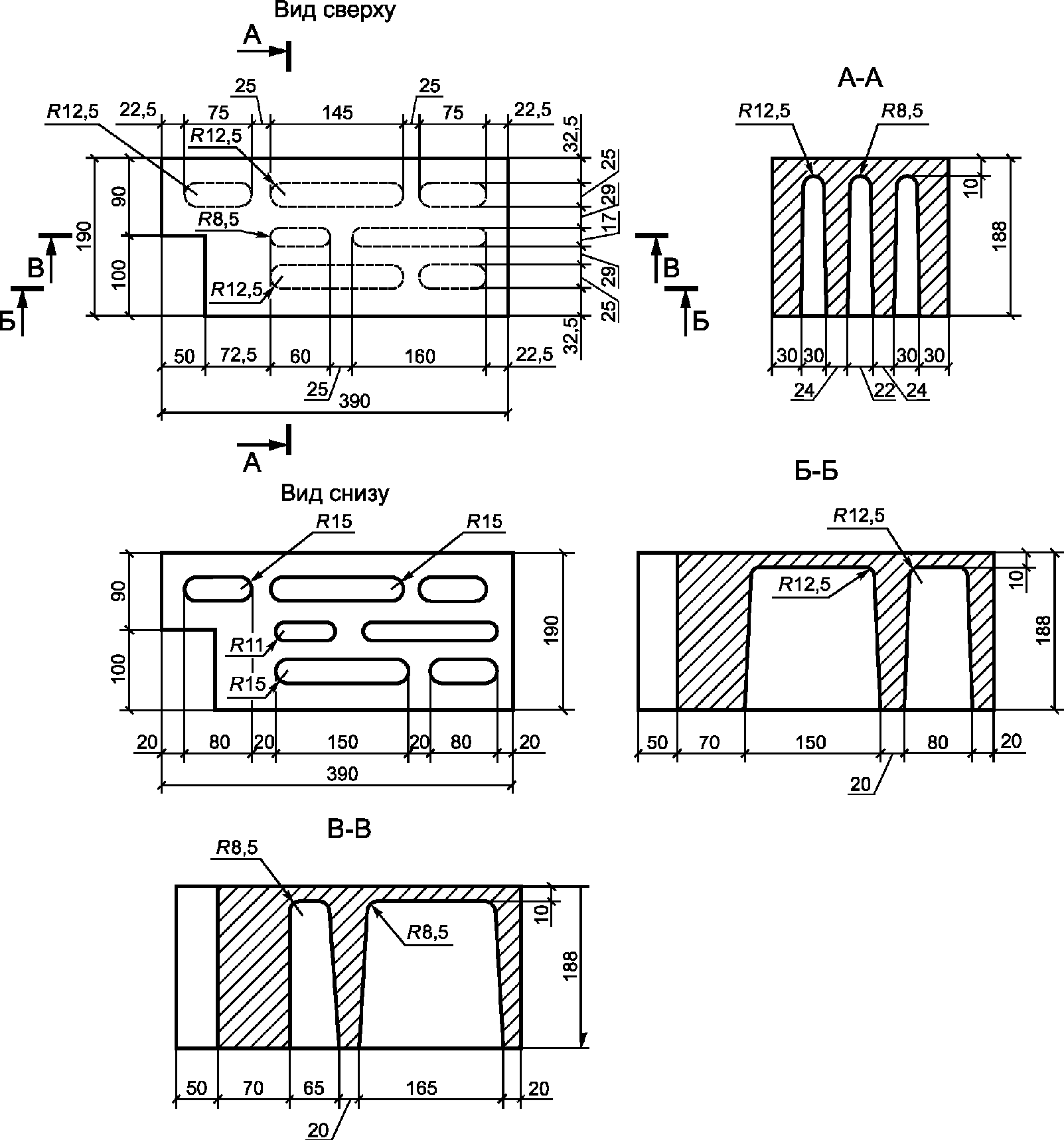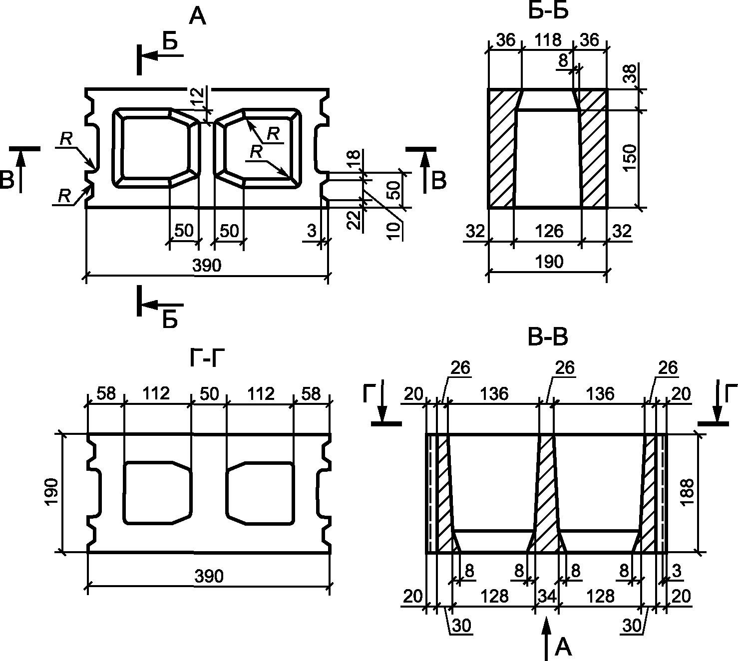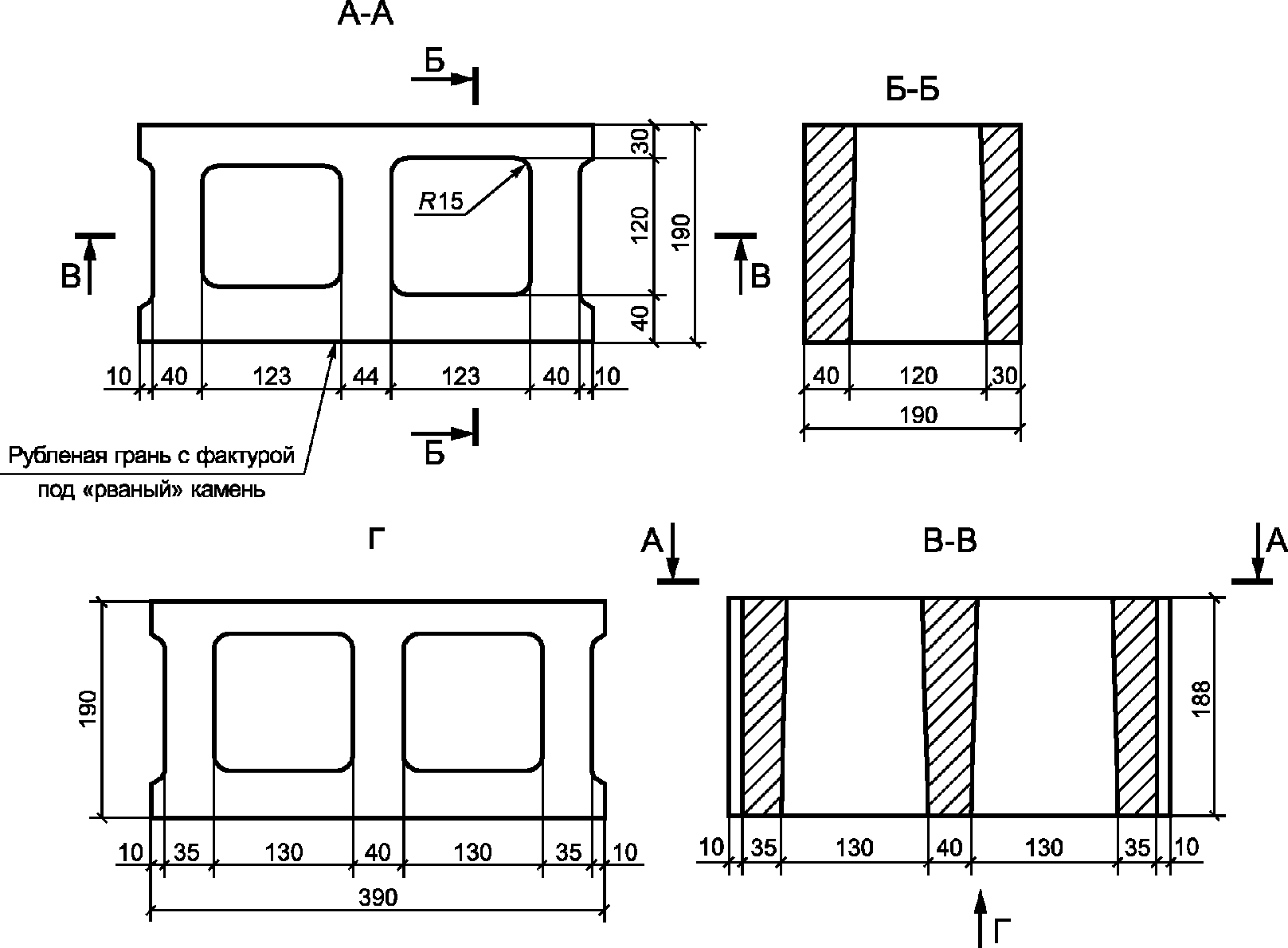 РАЗМЕРЫ, ФОРМА БЕТОННЫХ СТЕНОВЫХ КАМНЕЙ