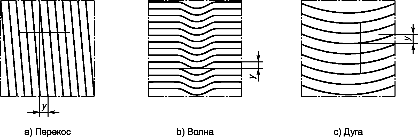 3.8 смещение проволоки (deviation of the wire) y: Отклонение проволоки от эталонной прямой, например струны или линейки.