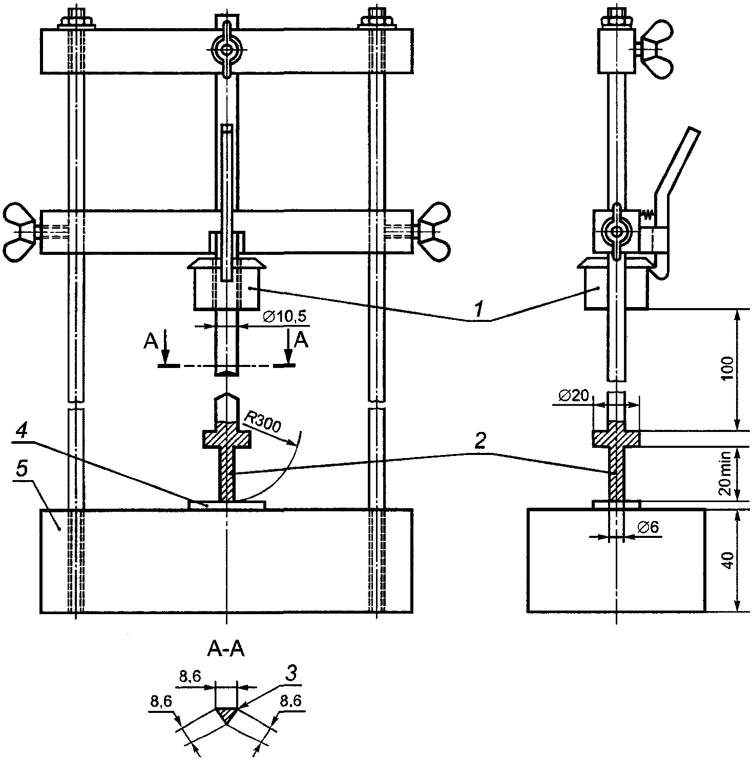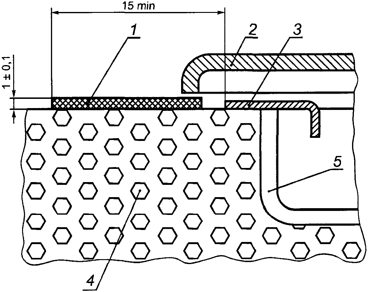 Образец закрепляют и к испытательной жиле прикладывают силу 45 Н в течение 5 мин в направлении, перпендикулярном к открытой поверхности образца.