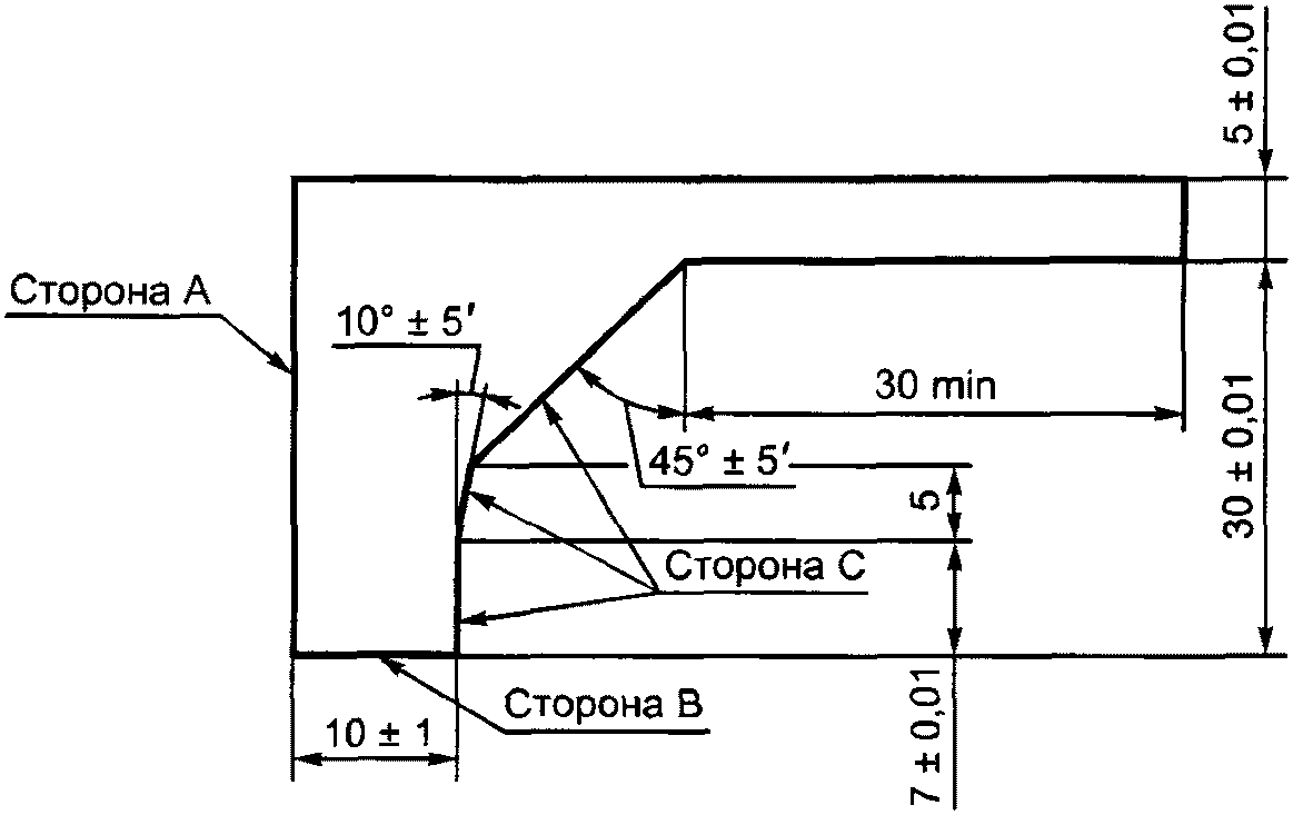 Плоскую поверхность испытуемой детали, желательно размерами не менее 15 x 15 мм и толщиной не менее 3 мм, располагают горизонтально.