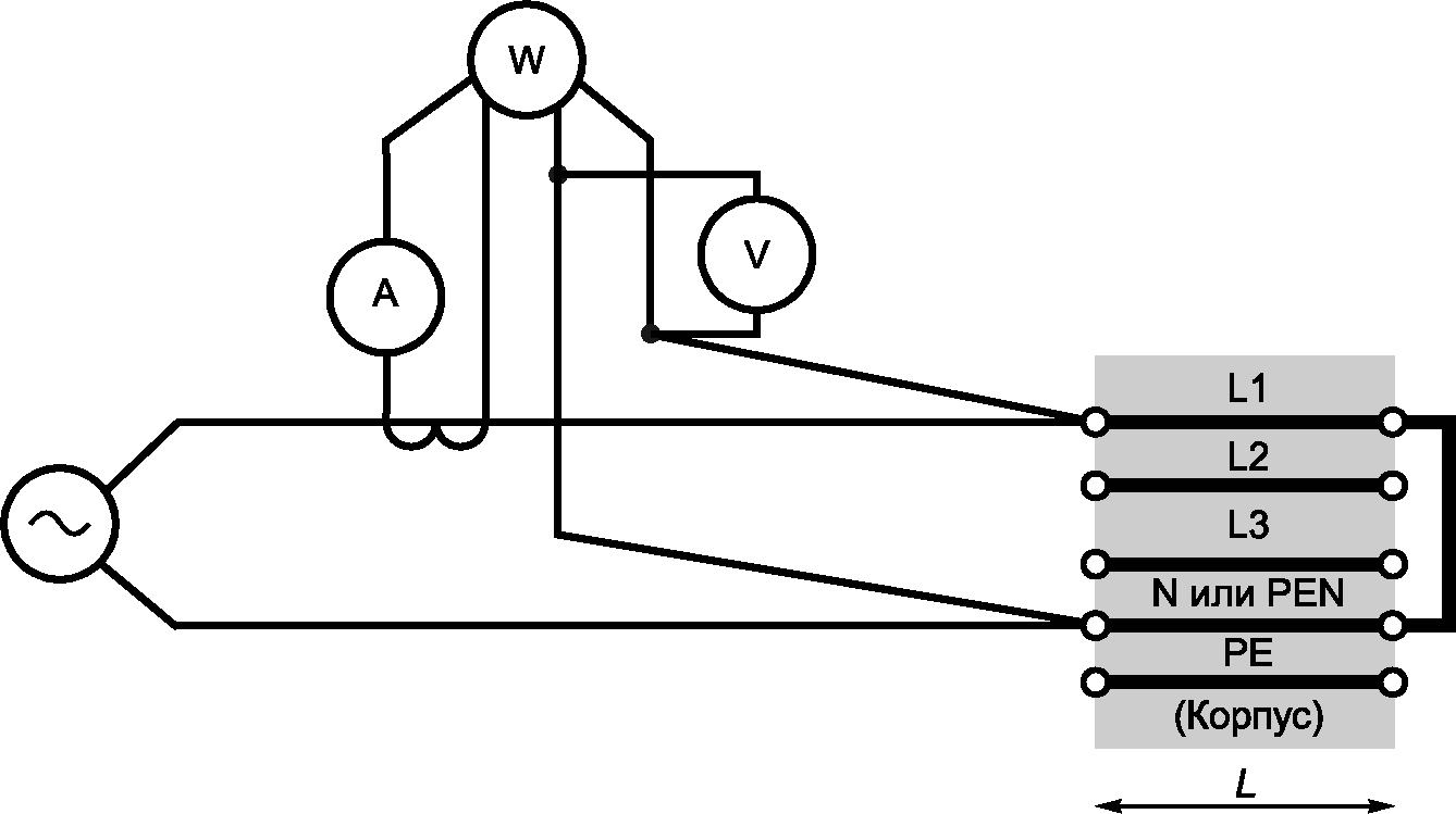 Если корпус не предназначен для использования в качестве единственного защитного провода, а отдельный PE/PEN-провод отсутствует, проводят измерение между фазовыми проводами и выходной клеммой корпуса.