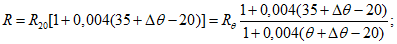 Рассчитывают R20 и Z(1)20 (если система сборных шин не работает и при температуре проводов +20 °C) и R и Z(1) (если система сборных шин работает при InC при температуре окружающего воздуха +35 °C) по формулам: