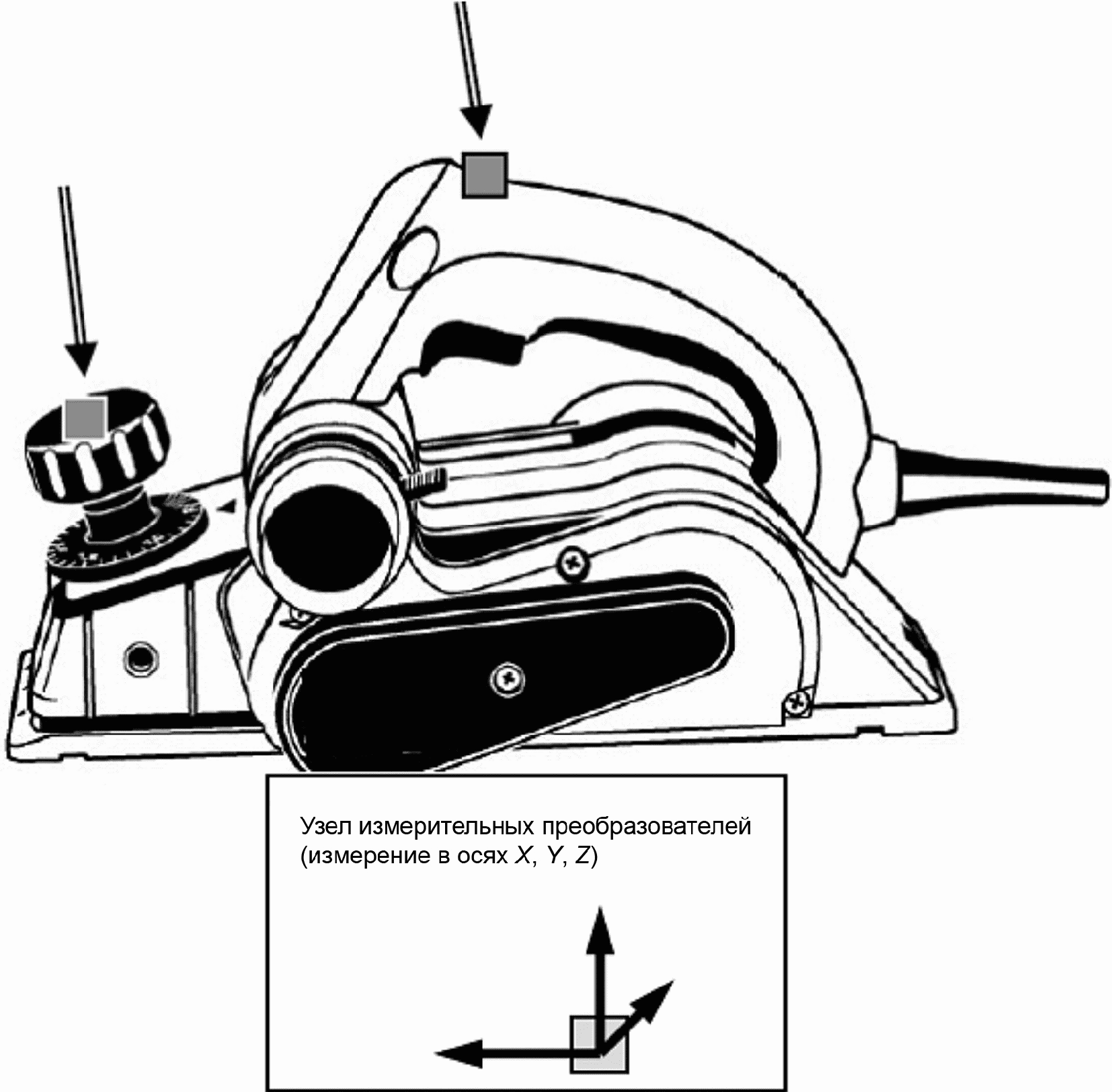 рисунке I.102 показаны места установки датчиков на основной и дополнительной рукоятке рубанка.