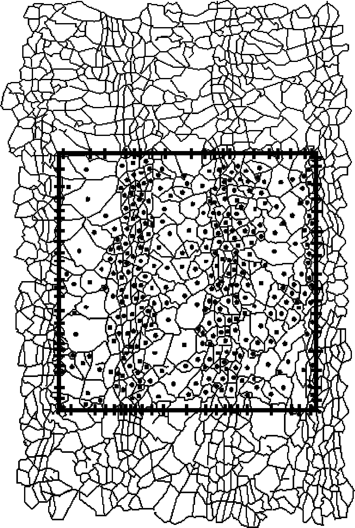 Подсчет осколков начинают через три минуты после разрушения образца и затем в течение 10 мин после разрушения образца проводят их подсчет. Подсчитывают количество целых (без трещин) осколков на нормируемой площади (полученной наложением шаблона). Целые осколки - если трещина в осколке не проходит от одной кромки до другой (см. рисунок 4).