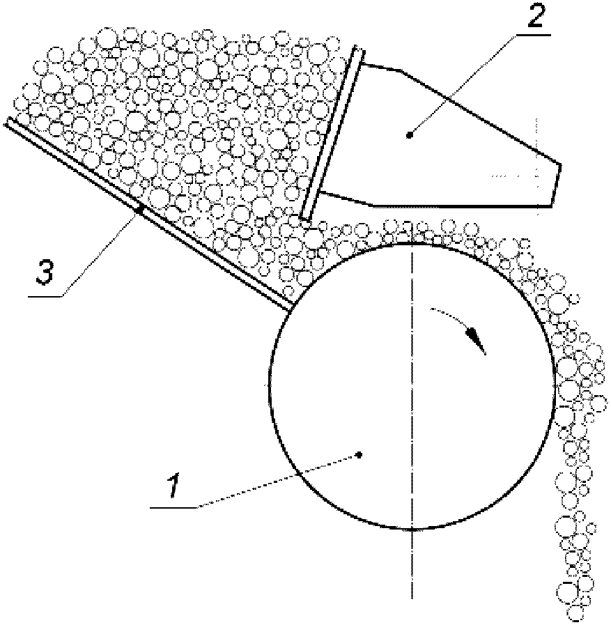 1 - подающий барабан; 2 - шибер; 3 - питатель;