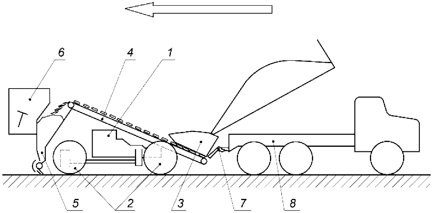 7 - сцепное устройство; 8 - прицепленный самосвал