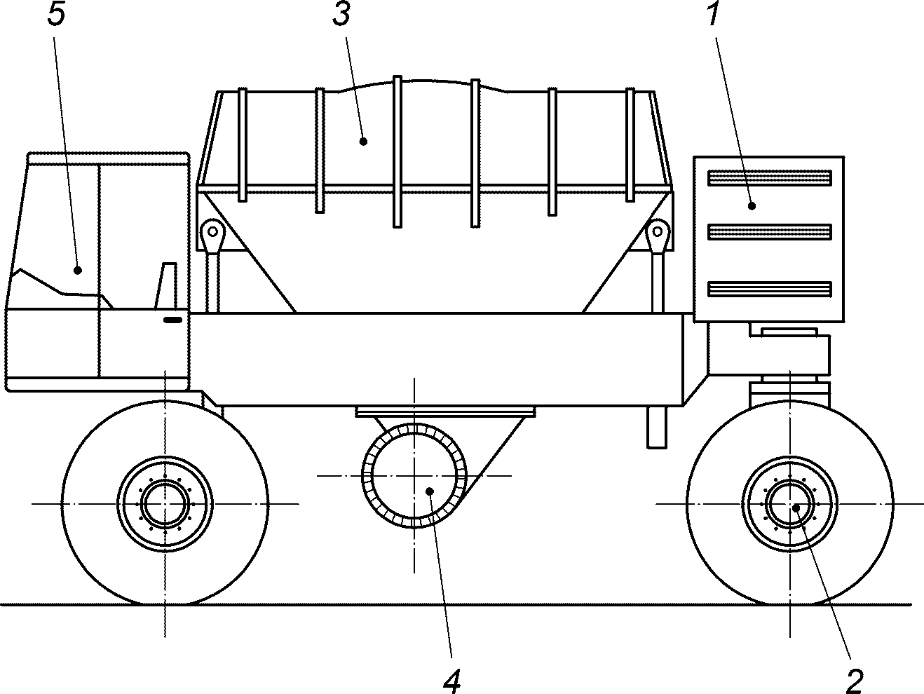 1 - двигатель и трансмиссия; 2 - приводные оси;