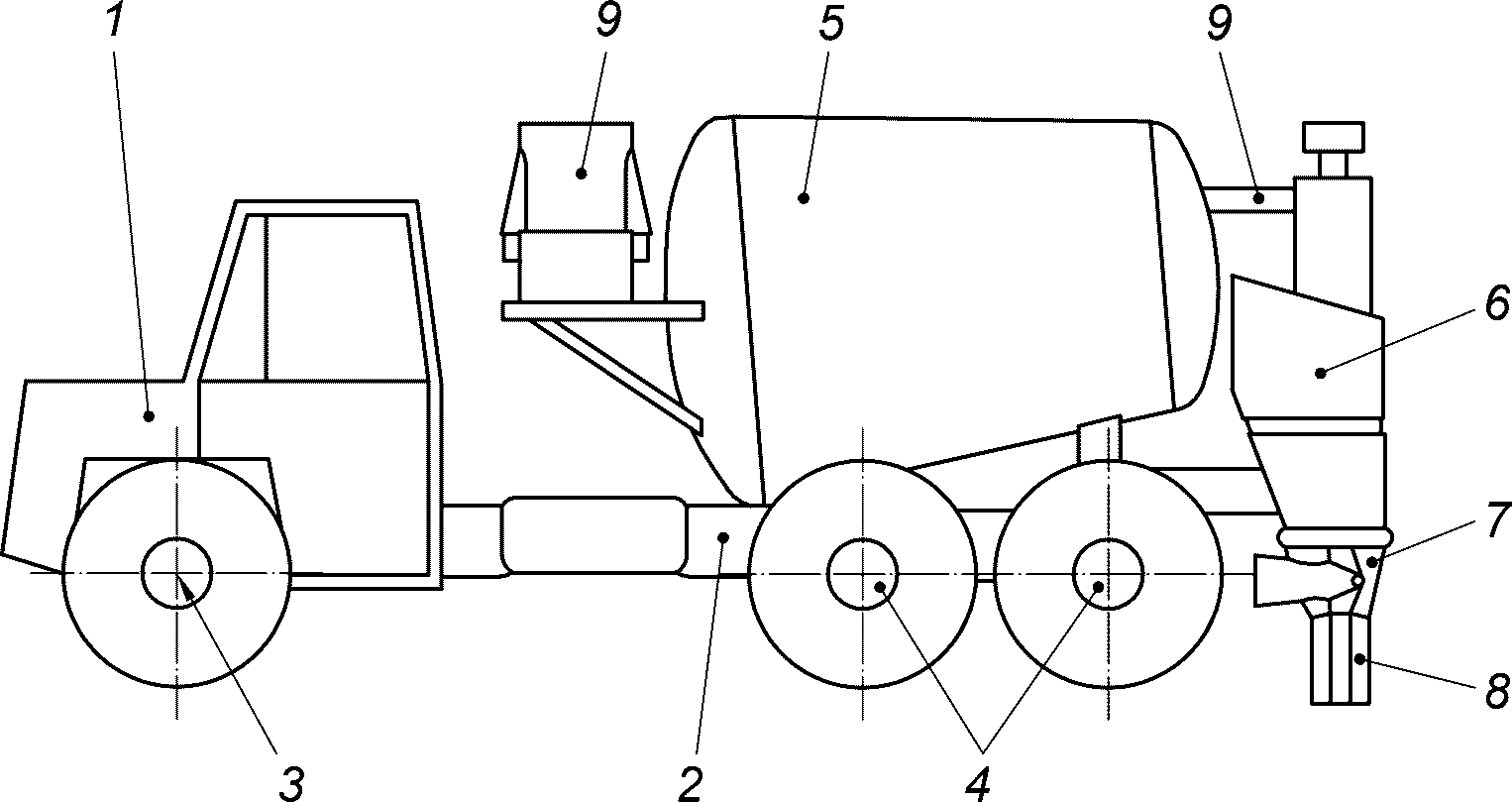 1 - двигатель и трансмиссия; 2 - шасси; 3 - неприводная ось