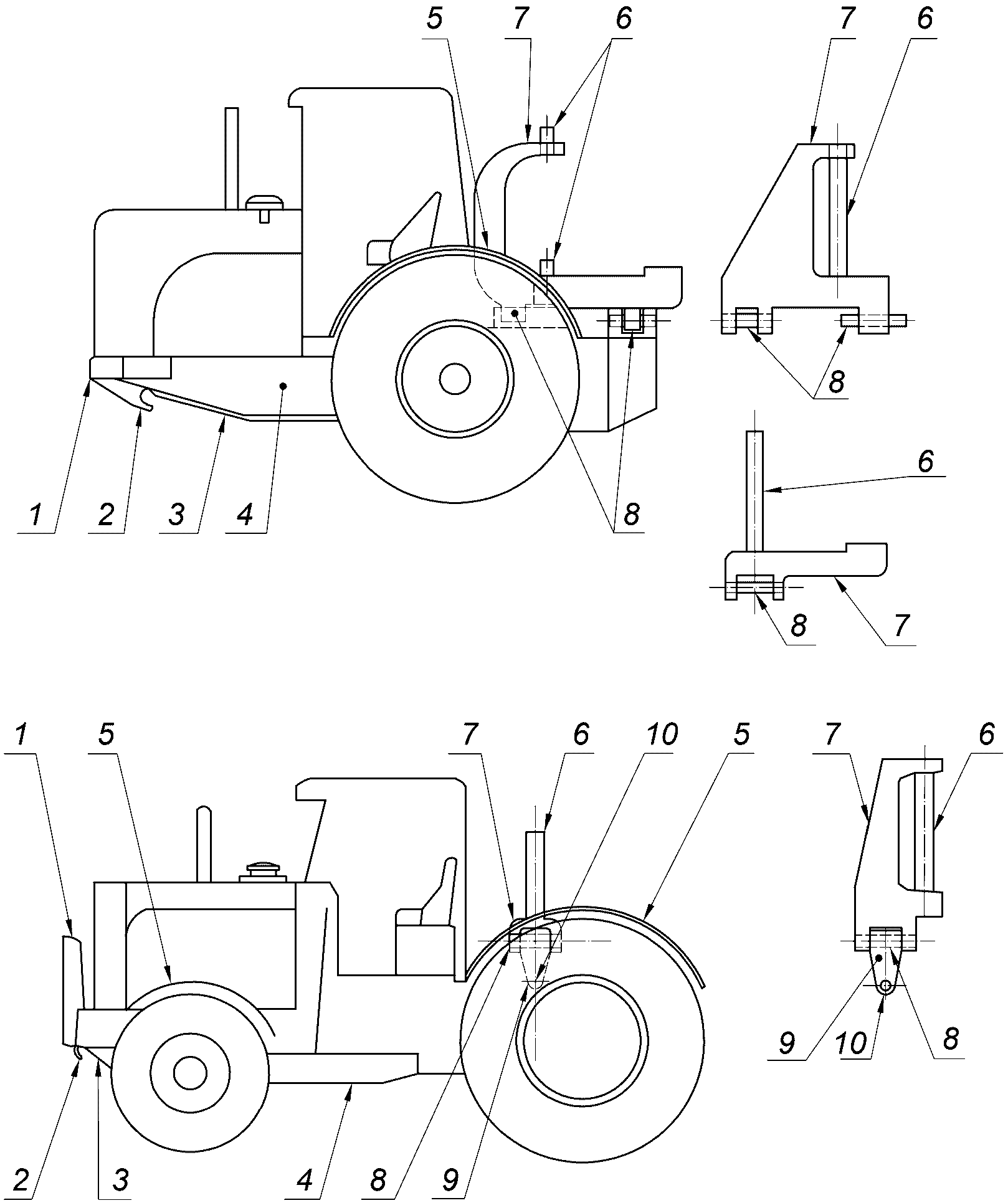 3.1.2 базовая машина (base machine): Машина с кабиной или навесом и при наличии, защитными конструкциями, без рабочего оборудования или рабочих органов, но с необходимыми приспособлениями для их монтажа.