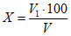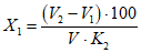 По высоте пика двуокиси углерода, приведенной к чувствительности регистратора М1, определяют по градуировочному графику объем двуокиси углерода в пробе аргона и вычисляют объемную долю двуокиси углерода (X) в процентах по формуле
