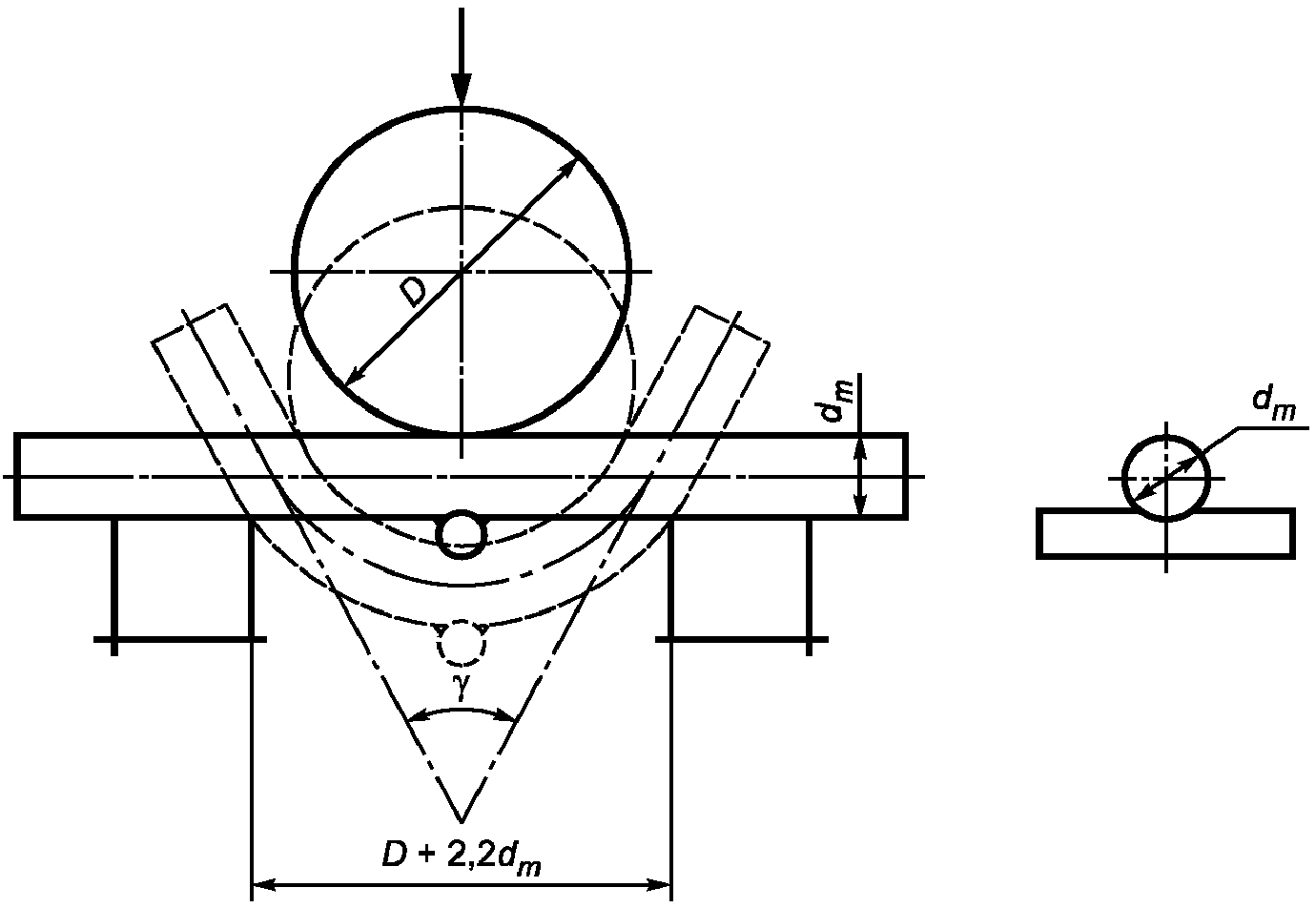 И.5.2. Испытания образцов крестообразных соединений на изгиб проводят вокруг оправки диаметром D, равным