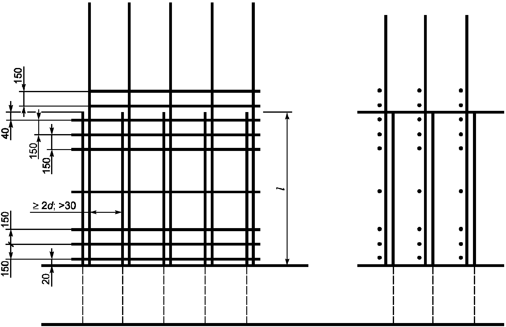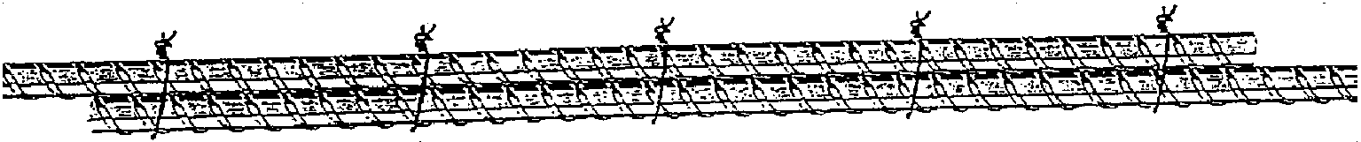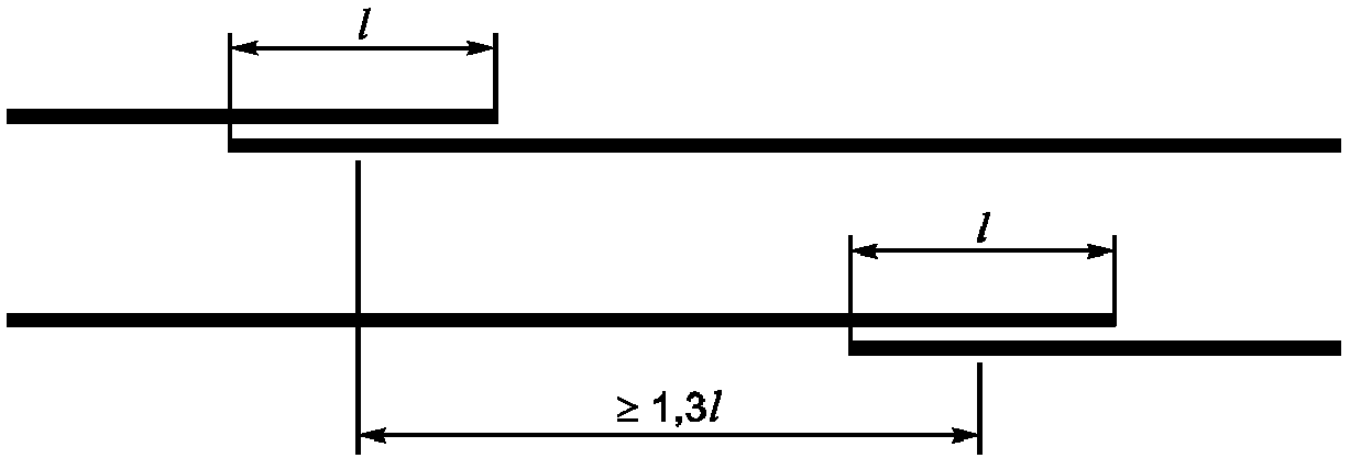 Стержни, соединяемые внахлестку, должны быть связаны вязальной проволокой в нескольких местах (см. рисунок Ж.1).
