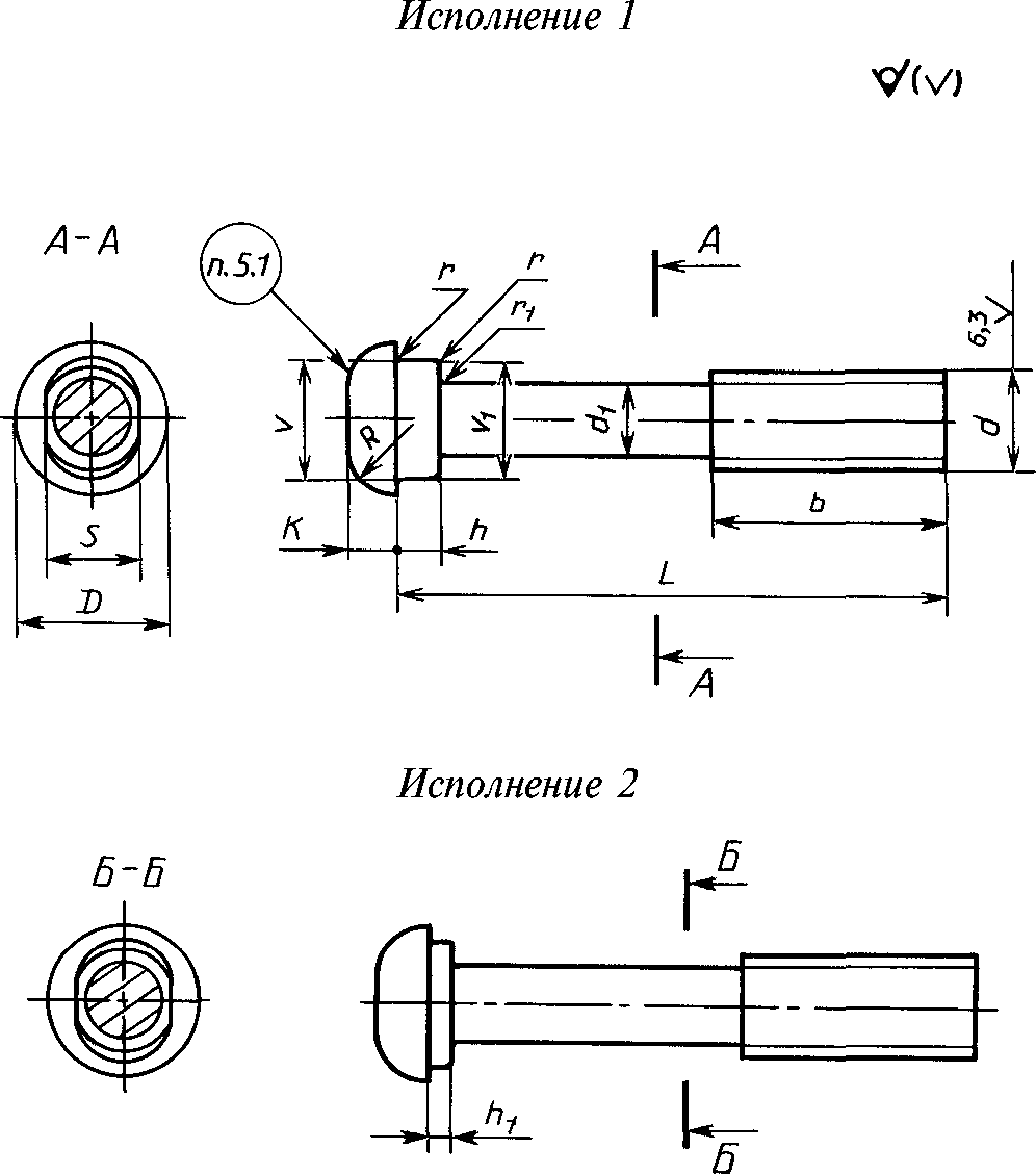 1.1 Конструкция и размеры болтов должны соответствовать указанным на рисунке и в