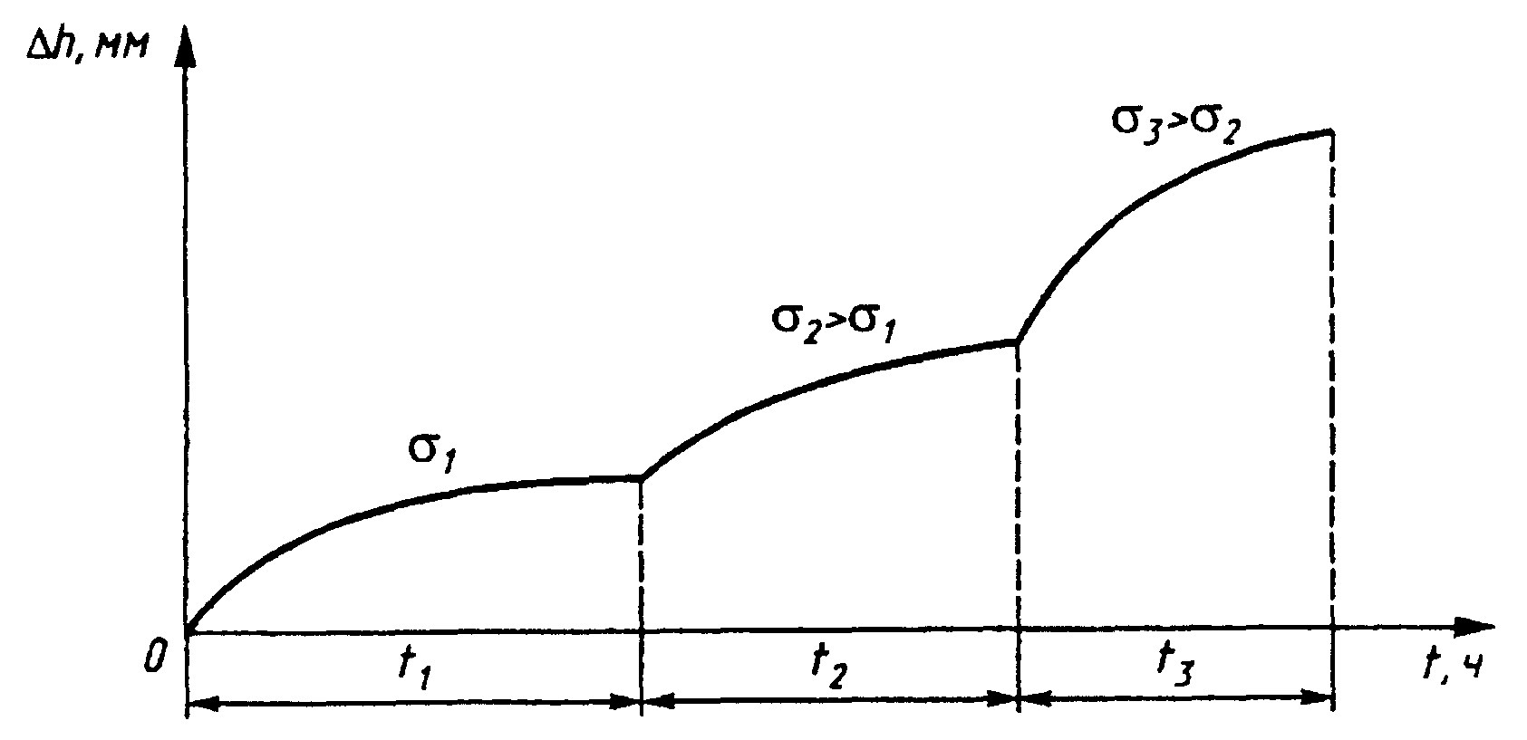Результаты представляют в виде семейства кривых ползучести при постоянных напряжениях