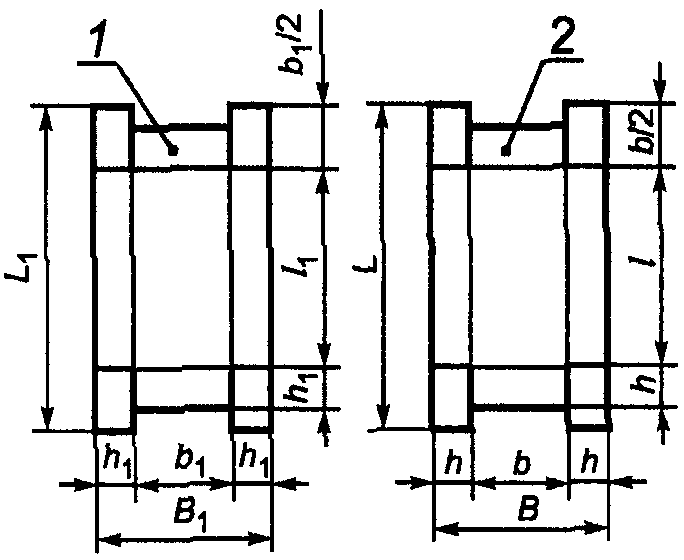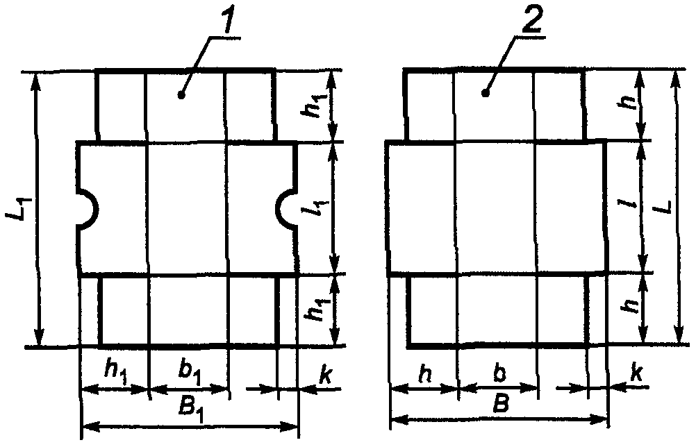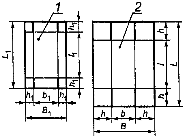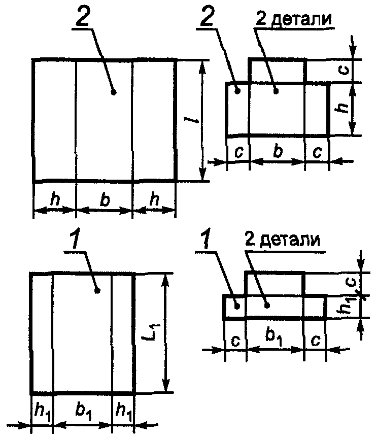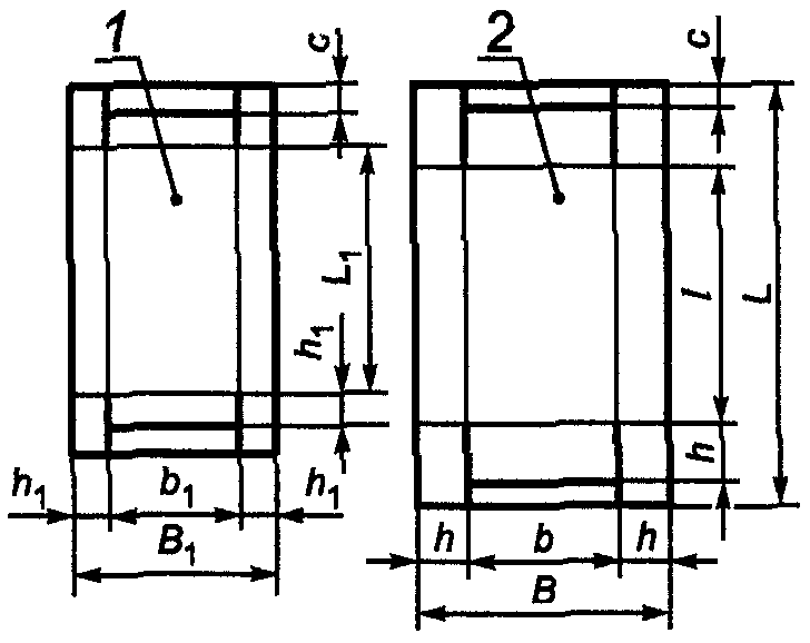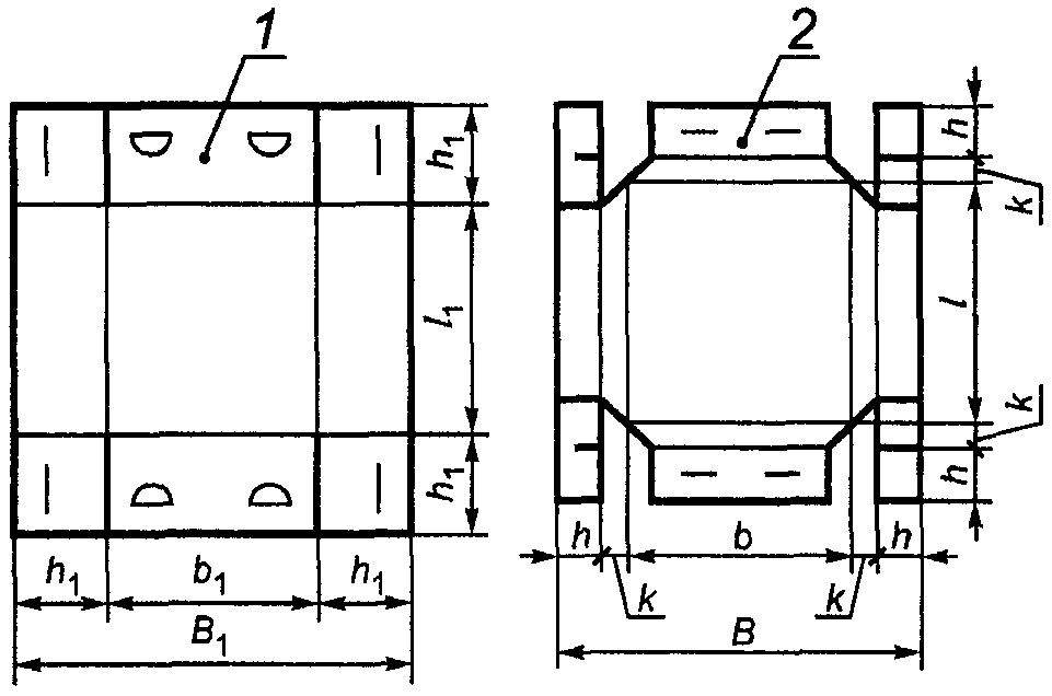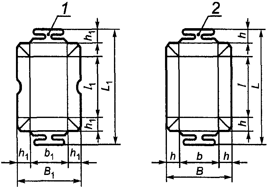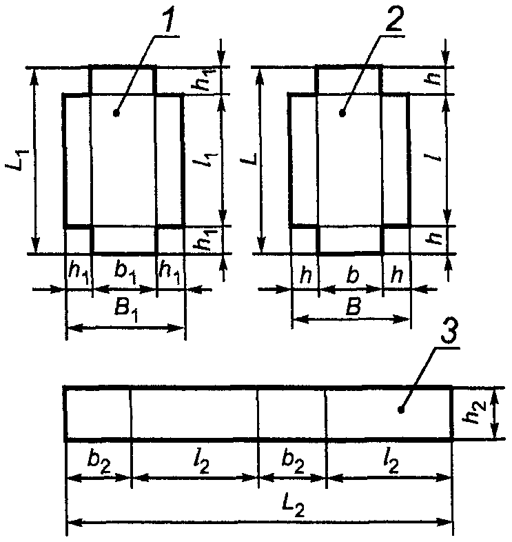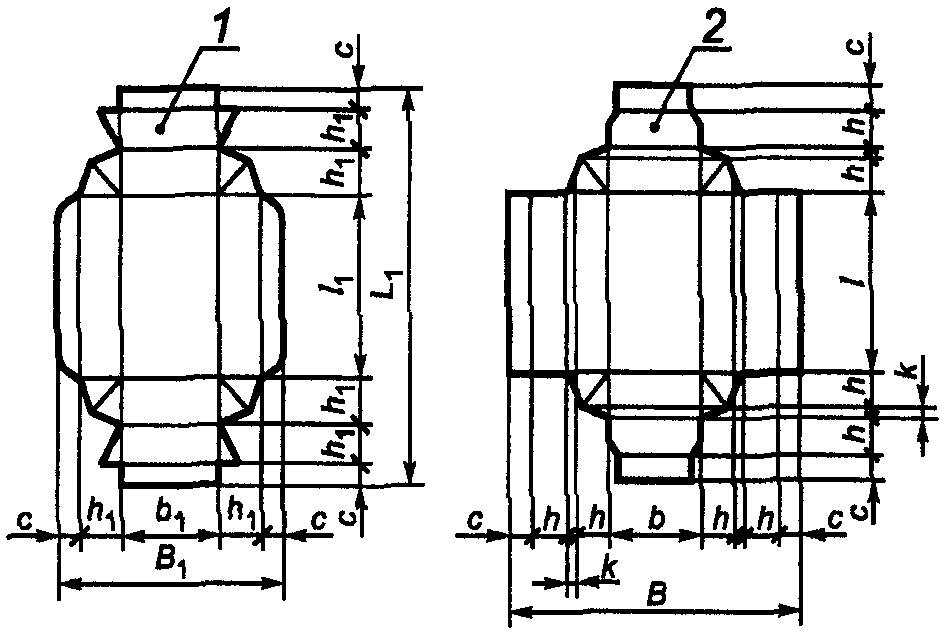 Примечания 1. Условные обозначения деталей коробок на рисунках 1 - 23, принятые в таблице А.1: 1 - крышка; 2 - корпус; 3 - элемент корпуса. 2. Условные обозначения размеров на рисунках 1 - 23: |