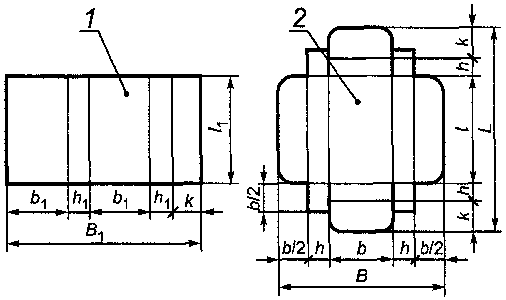 - ширина развертки крышки; |  - высота элемента корпуса; |