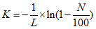 п. 1.2. Значения К, не приведенные в таблице, пересчитывают в N по формуле, указанной в