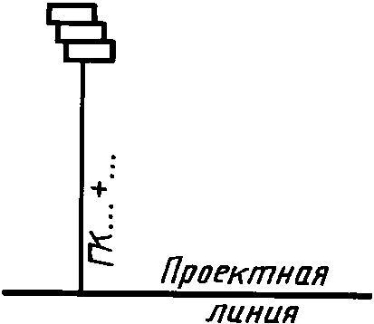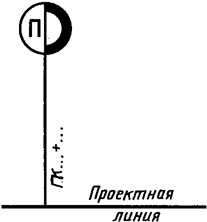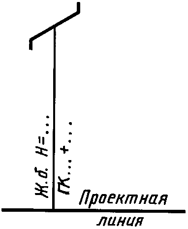 Примечание - Направление стрелки соответствует направлению возрастания километража, а ее наклон вверх обозначает сброс воды влево, вниз - сброс воды вправо. |