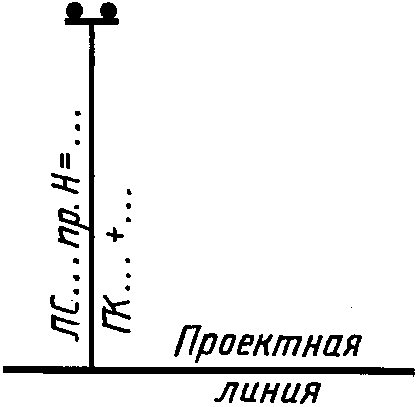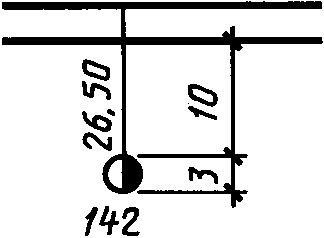 Примечание к пунктам 7 и 8 - Слева от выносной линии вместо точек указывают краткое наименование инженерной сети или ее обозначение, а также высоту опоры. Изображение дополняют отметкой уровня. |