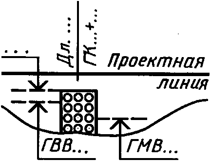 В изображении путепровода, виадука, эстакады, располагаемых на незатопляемых территориях, отметки горизонтов высоких (ГВВ) и меженных (ГМВ) вод не указывают.