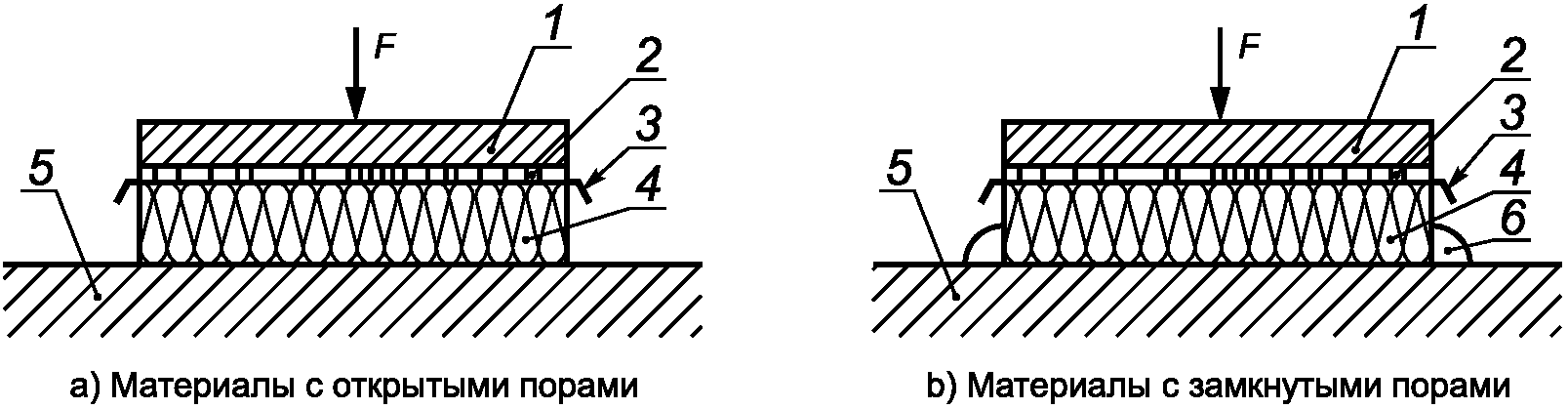 Для образцов, изготовленных из материалов с замкнутыми порами, стык между образцом и основанием герметизируют по периметру вазелином [см.